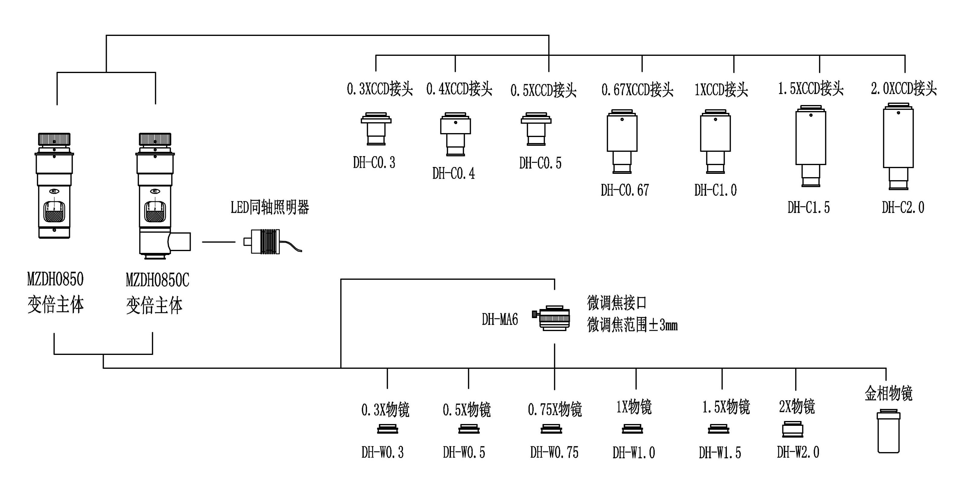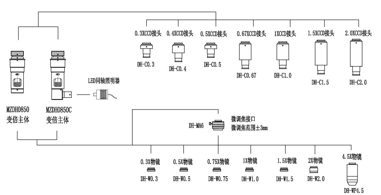 ● 可使用LED或光纖冷光源同軸照明,滿足觀察不同物體的需要